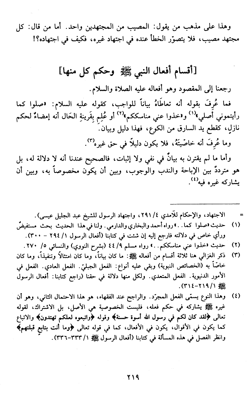 أقسام أفعال النبي صلى الله عليه وسلم وحكم كل منها :