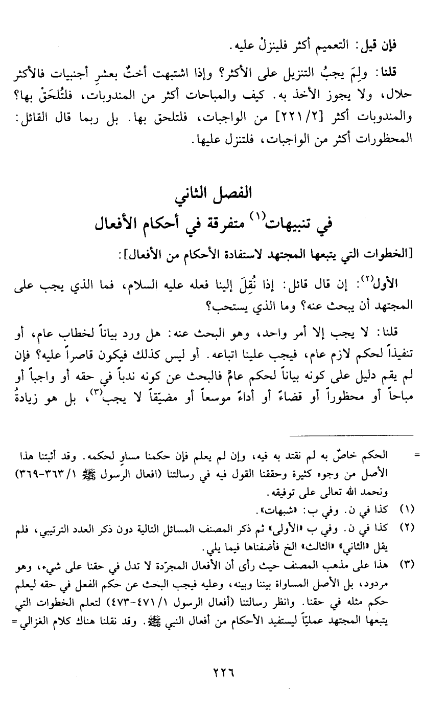 الفصل الثاني في شبهات متفرقة في أحكام الأفعال