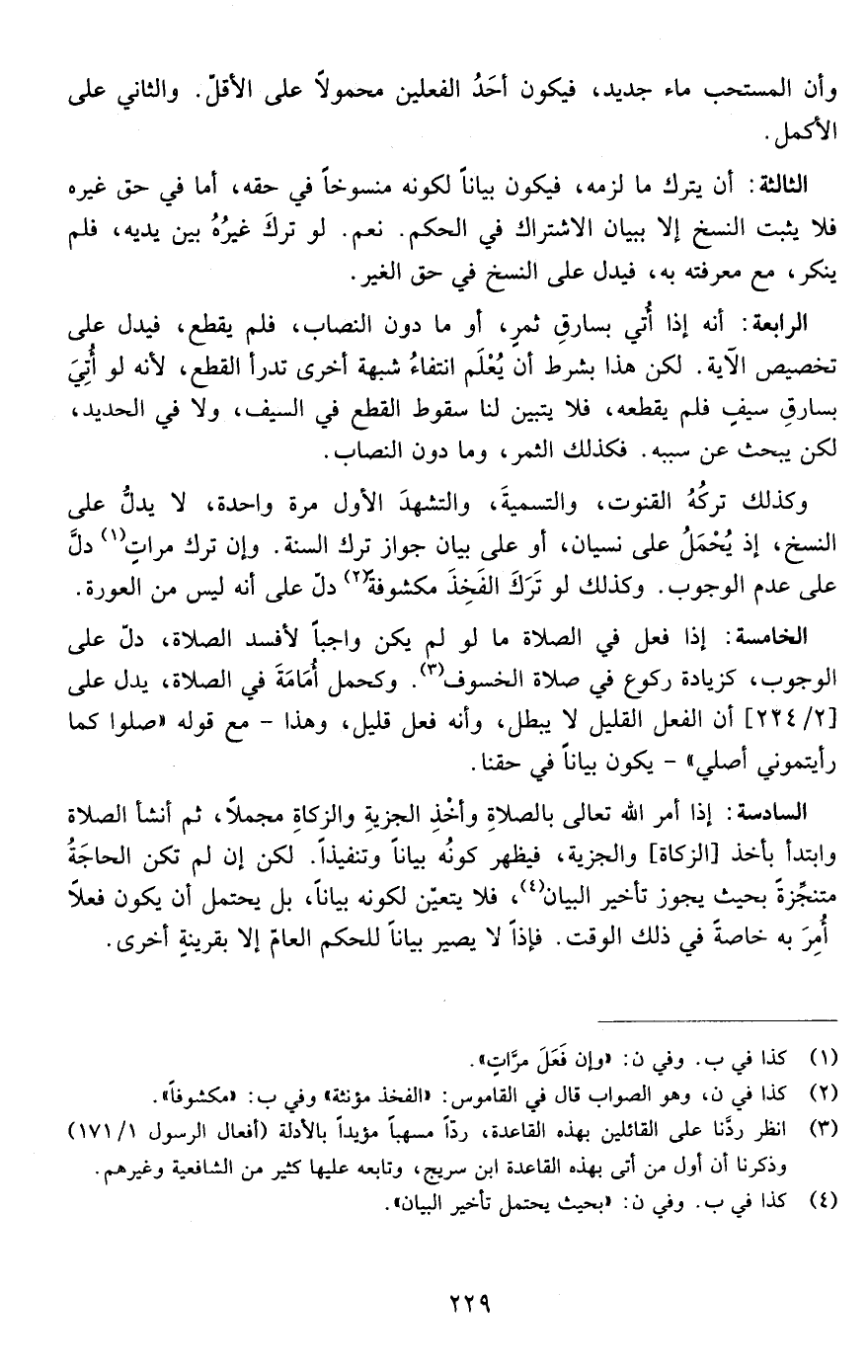 وكذلك تركه القنوت والتسمية والتشهد الأول مرة واحدة لا يدل على النسخ إذ يحمل على نسيان أو على بيان جواز ترك السنة وإن ترك مرات دل على عدم الوجوب وكذلك لو ترك الفخذ مكشوفا دل على أنه ليس من العورة