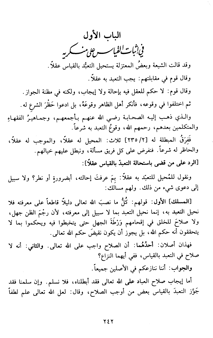 فهذا أصلان: أحدهما:أن الصلاح واجب على الله تعالى والثاني أنه لا صلاح في التعبد بالقياس ففي أيهما النزاع ؟