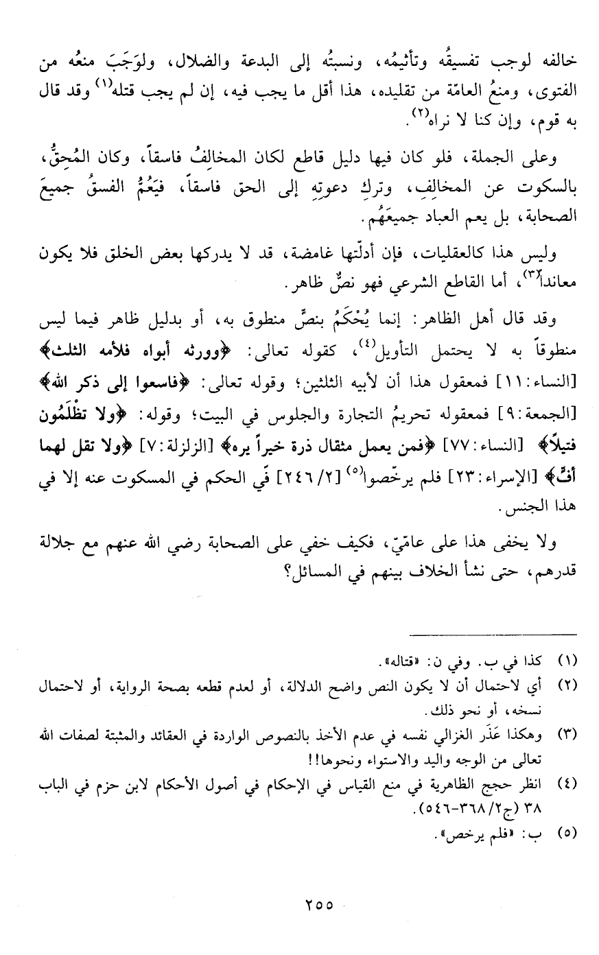 وعلى الجملة فلو كان فيها دليل قاطع لكان المخالف فاسقا وكان المحق بالسكوت عن المخالف وترك دعوته إلى الحق فاسقا فيعم الفسق جميع الصحابة بل يعم العباد جميعهم