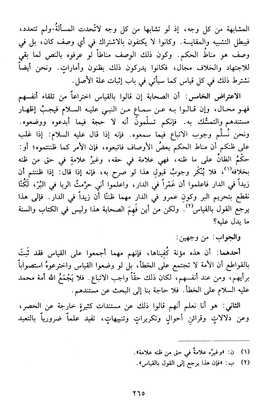 المشابهة من كل وجه إذ لو تشابها من كل وجه لأتحدت المسألة ولم تتعدد فيبطل التشبيه والمقايسة وكانوا لا يكتفون بالإشتراك في أي وصف كان بل في وصف هو مناط الحكم وكون ذلك الوصف مناطا لو عرفوه بالنص لما بقي للاجتهاد والخلاف مجال فكانوا يدركون ذلك بظنون وأمارات ونحن أيضا نشترط ذلك في كل قياس كما سيأتي في باب إثبات علة الأصل