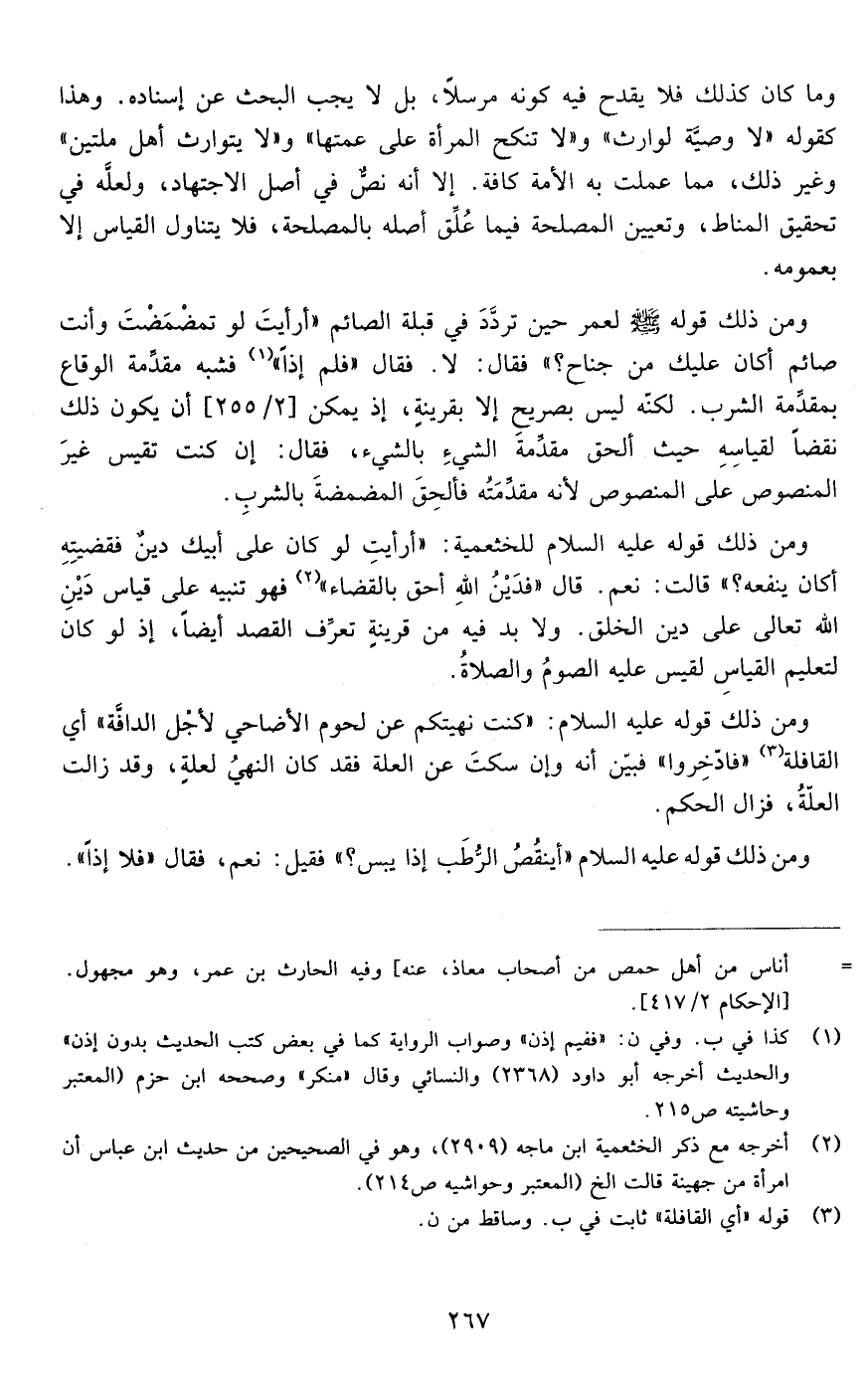ومن ذلك قوله عليه السلام: " أينقض الرطب إذا يبس؟ فقيل نعم قال فلا إذا
