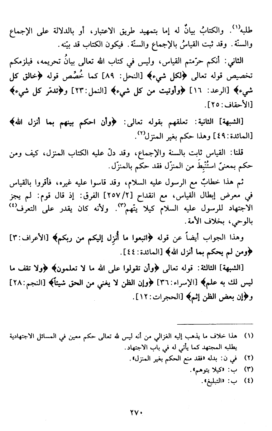 الثاني: أنكم حرمتم القياس وليس في كتاب الله تعالى بيان تحريمه فيلزمكم تخصيص قوله تعالى {لِكُلِّ شَيْءٍ } [الأنعام: من الآية154]كما خصص قوله {خَالِقُ كُلِّ شَيْءٍ } [الرعد: من الآية16]{ وَأُوتِيَتْ مِنْ كُلِّ شَيْءٍ } [النمل: من الآية23 ] {تُدَمِّرُ كُلَّ شَيْءٍ } [الاحقاف: من الآية25]