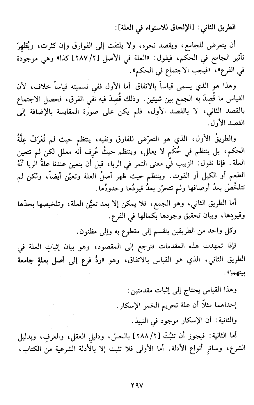فإذا تمهدت هذه المقدمات فيرجع إلى المقصود وهو بيان إثبات العلة في الطريق الثاني الذي هو القياس بالاتفاق وهو رد فرع إلى أصل بعلة جامعة بينهما