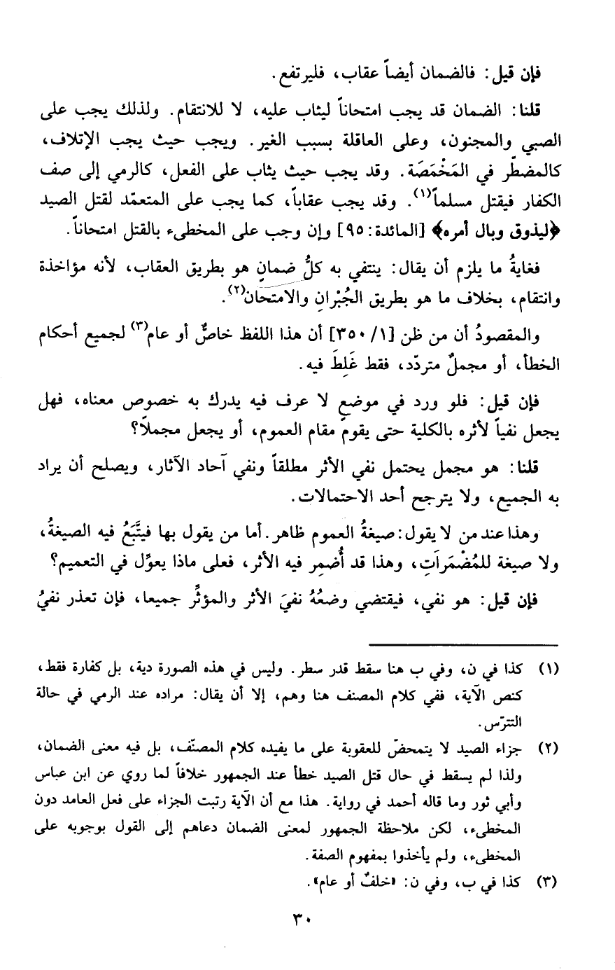 قلنا: الضمان قد يجب امتحانا ليثاب عليه لا للانتقام ولذلك يجب على الصبي والمجنون وعلى العاقلة بسبب الغير ويجب حيث يجب الإتلاف كالمضطر في المخمصة وقد يجب عقابا كما يجب على المعتمد لقتل الصيد { لِيَذُوقَ وَبَالَ أَمْرِهِ} [المائدة: من الآية95] وإن وجب على المخطىء بالقتل امتحانا
