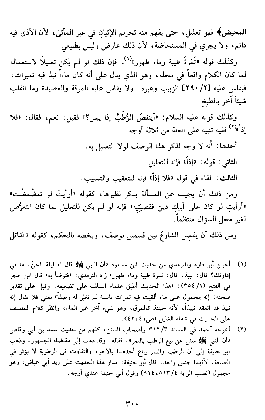 وكذلك قوله عليه السلام:"أينقص الرطب إذا يبس ؟"فقيل نعم فقال فلا إذا ففيه تنبيه على العلة من ثلاثة أوجه: