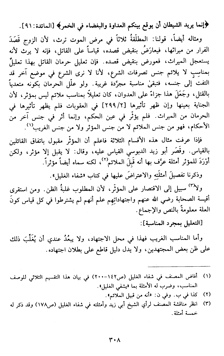 ولا سبيل إلى الاقتصار على المؤثر لأن المطلبو غلبة الظن ومن استقرأ أقيسة الصحابة رضي الله عنهم واجتهاداتهم علم أنهم لم يشترطوا في كل قياس كون العلة معلومة بالنص والإجماع