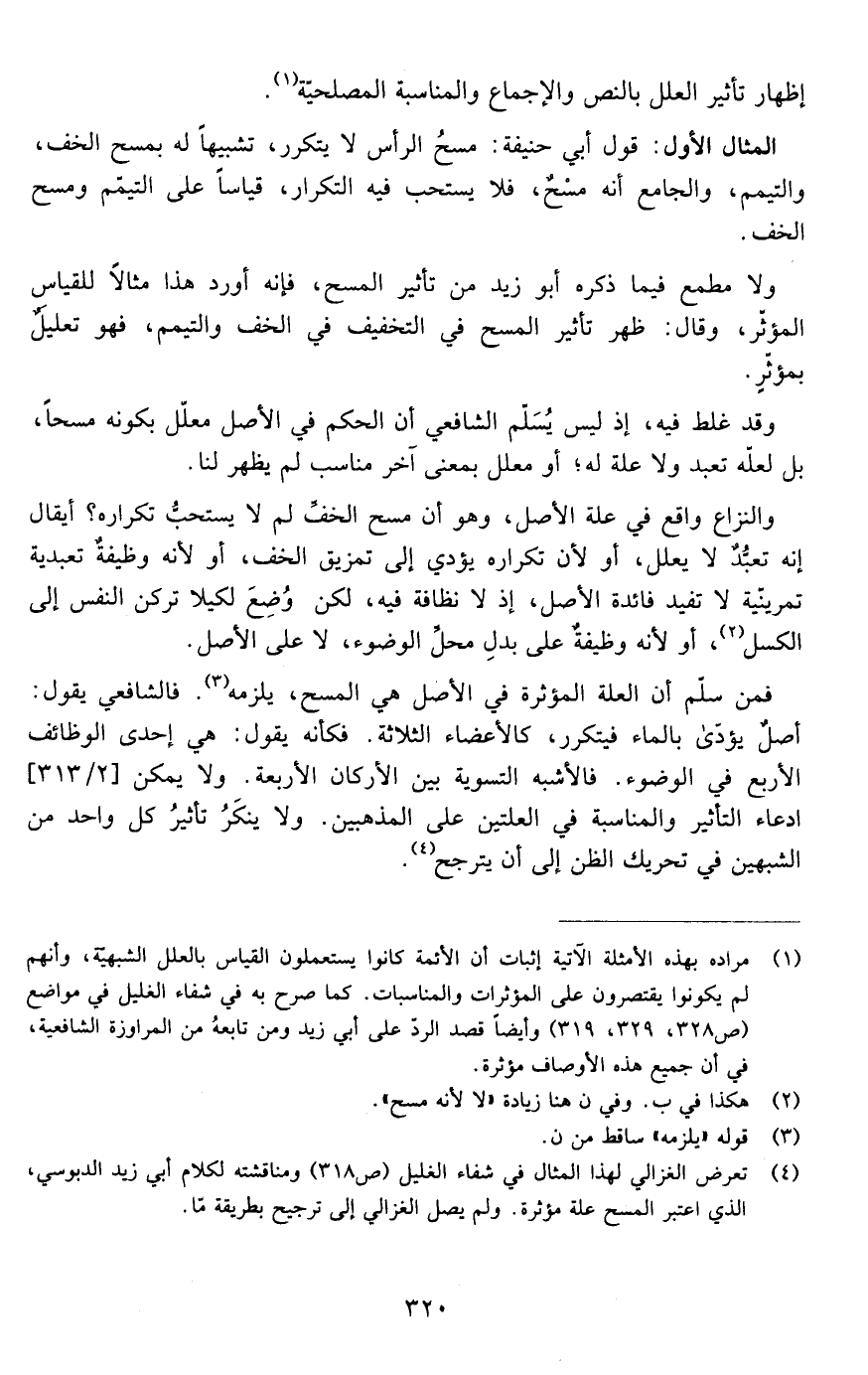 ولا مطمع فيما ذكره أبو زيد من تأثير المسح فإنه أورد هذا مثالا للقياس المؤثر وقال ظهر تأثير المسح في التخفيف في الخف والتيمم فهو تعليل بمؤثر