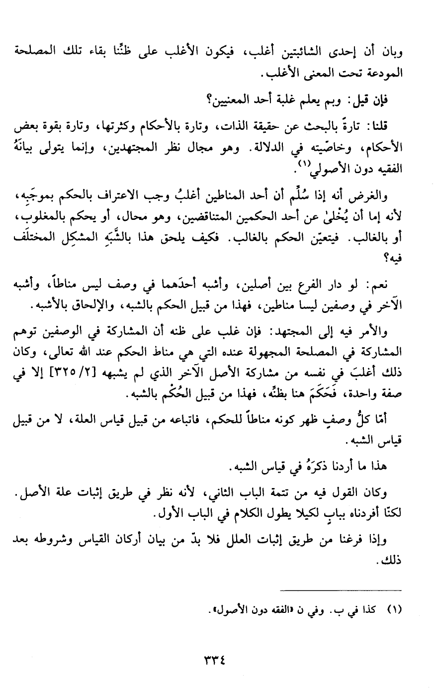 قلنا تارة بالبحث عن حقيقة الذات وتارة بالأحكام وكثرتها وتارة بقوة بعض الأحكام وخاصيته في الدلالة وهو مجال نظر المجتهدين وإنما يتولى بيانه الفقيه دون الأصولي