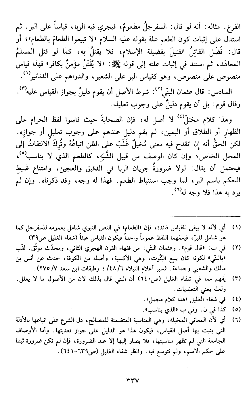 الفرع مثاله: أنه لو قال: السفرجل مطعوم فيجري فيه الربا قياسا على البر ثم استدل على إثبات كون الطعم علة بقوله عليه السلام لا تبيعوا الطعام بالطعام أو قال فضل القاتل القتيل بفضيلة الإسلام فلا يقتل به كما لو قتل المسلم المعاهد ثم استند في إثبات علته إلى قوله صلى الله عليه وسلم :"لا يقتل مؤمن بكافر" فهذا قياس منصوص على منصوص وهو كقياس البر على الشعير والدراهم على الدنانير