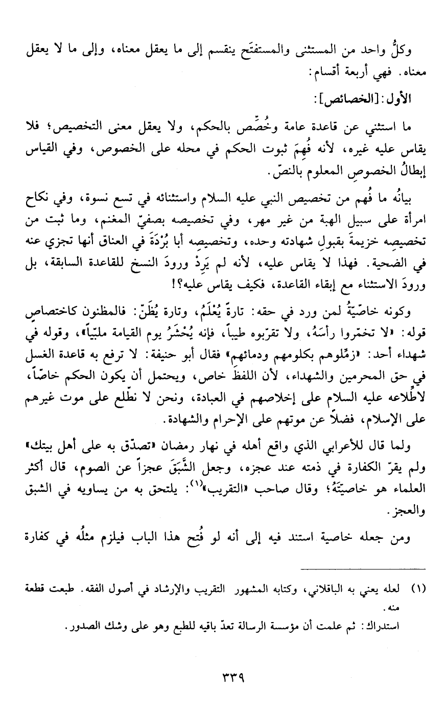 ولا سبيل إلى إبطال النص بالقياس بيانه ما فهم من تخصيص النبي عليه السلام واستثناؤه في تسع نسوة وفي نكاح امرأة على سبيل الهبة من غير مهر وفي تخصيصه بصفي المغنم وما ثبت من تخصيصه خزيمة بقبول شهادته وحده وتخصيصه أبا بردة في العناق أنها تجزىء عنه في الضحية فهذا لا يقاس عليه لأنه لم يرد ورود النسخ للقاعدة السابقة بل ورود الاستثناء مع إبقاء القاعدة فكيف يقاس عليه ؟!