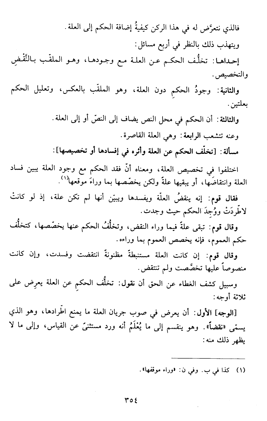 وسبيل كشف الغطاء عن الحق أن نقول تخلف الحكم عن العلة يعرض على ثلاثة أوجه: