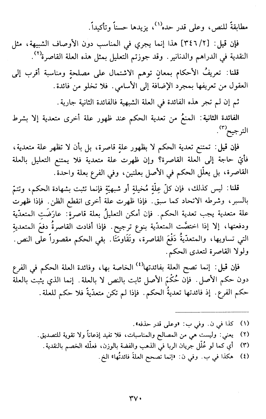 ثم إن لم تجر هذه الفائدة في العلة الشبهية فالفائدة الثانية جارية