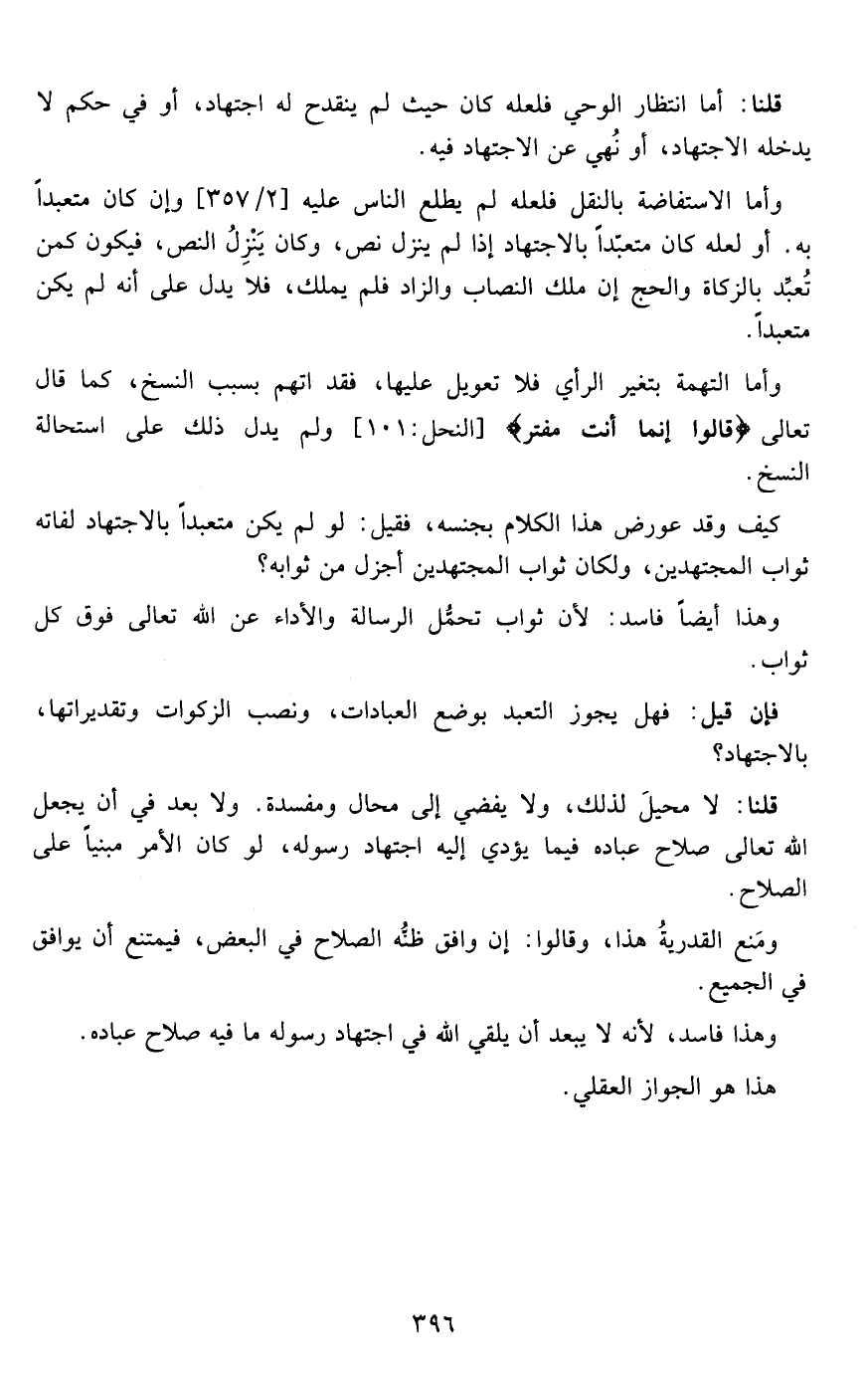 قلنا: لا محيل لذلك ولا يفضي إلى محال ومفسدة ولا بعد في أن يجعل الله تعالى صلاح عباده فيما يؤدي إليه اجتهاد رسوله لو كان الأمر مبينا على الصلاح