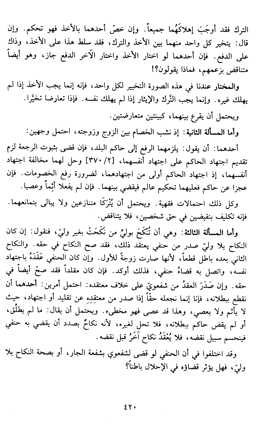 الترك فقد أوجب إهلاكهما جميعا وإن خص أحدهما بالأخذ فهو تحكم وإن قال يتخير كل واحد منهما بين الأخذ والترك فقد سلط هذا على الأخذ وذاك على الدفع فإن أحدهما لو اختار الأخذ واختار الآخر الدفع جاز وهو أيضا متناقض بزعمهم فماذا يقولون ؟!