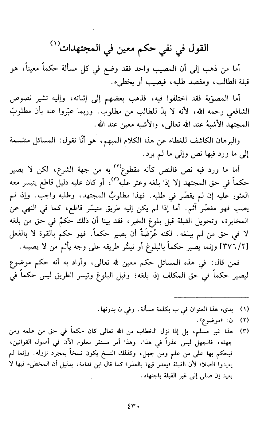 مسألة الخطأ والإصابة في الاجتهاد القول في نفي حكم معين في المجتهدات