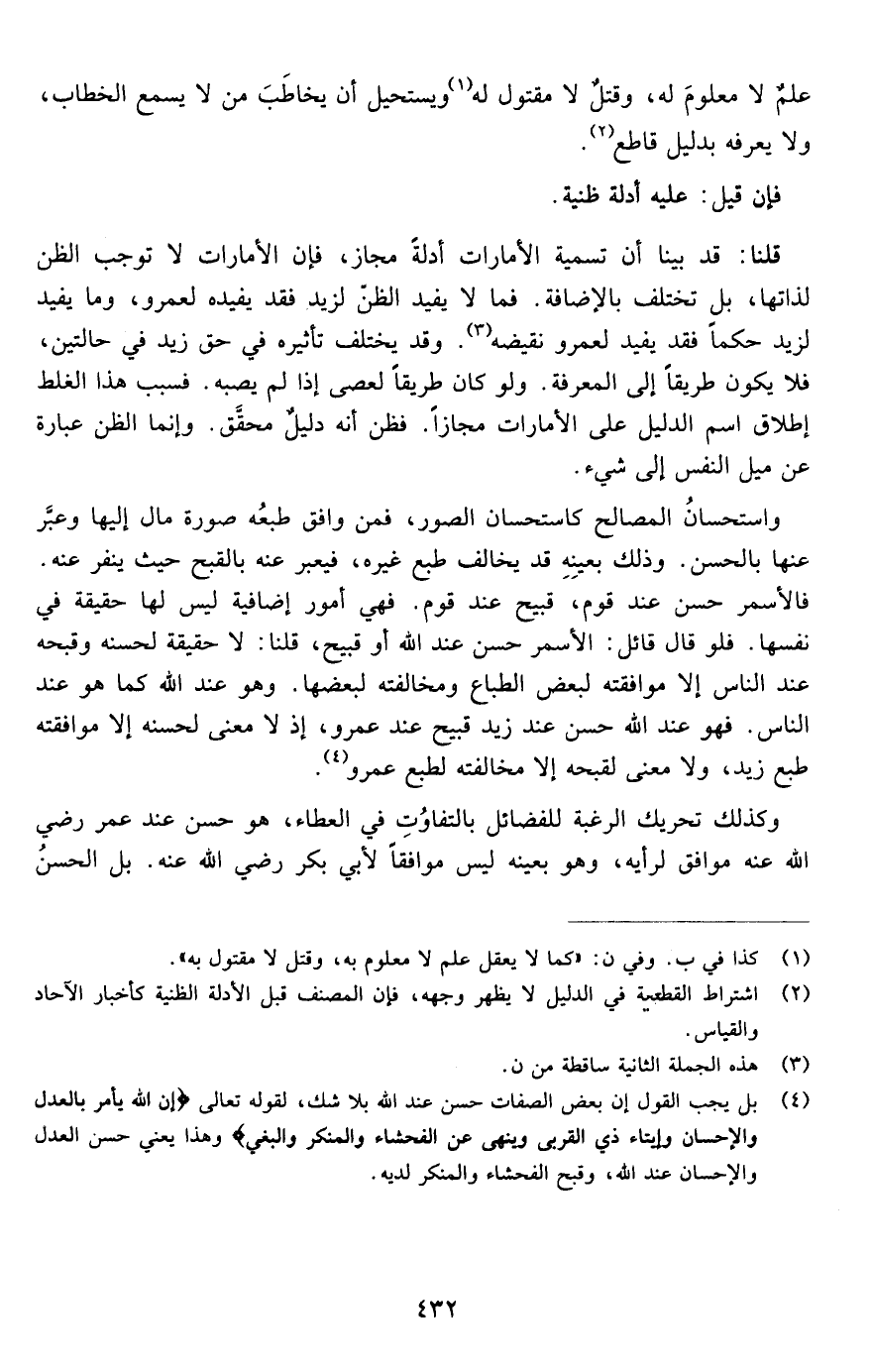 علم لا معلوم له وقتل لا مقتول له ويستحيل أن يخاطب من لا يسمع الخطاب ولا يعرفه بدليل قاطع