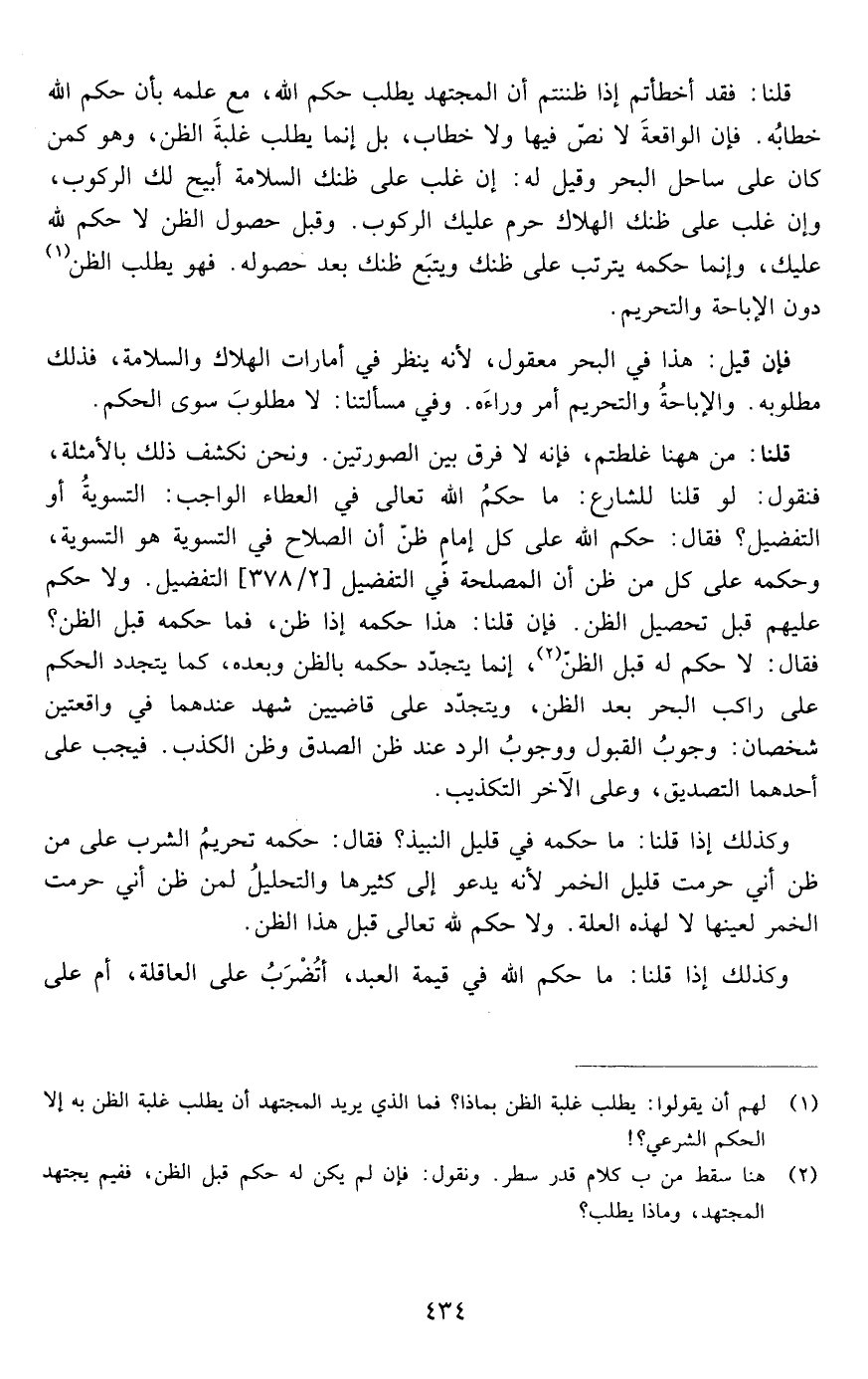 قلنا: فقد أخطأ إذ ظننتم أن المجتهد يطلب حكم الله مع علمه بأن حكم الله خطابه فإن الواقعة لا نص فيها ولا خطاب بل إنما يطلب غلبة الظن وهو كمن كان على ساحل البحر وقيل له إن غلب على ظنك السلامة أبيح لك الركوب وإن غلب على ظنك الهلاك حرم عليك الركوب وقبل حصول الظن لا حكم لله عليك وإنما حكمه يترتب على ظنك ويتبع ظنك بعد حصوله فهو يطلب الظن دون الإباحة والتحريم