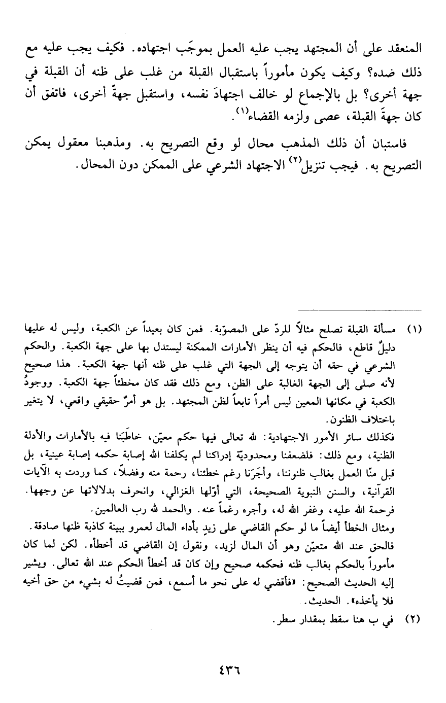 فاستبان أن ذلك المذهب محال لو وقع التصريح به . ومذهبنا معقول يمكن التصريح به . فيجب تنزيل الاجتهاد الشرعي على الممكن دون المحال
