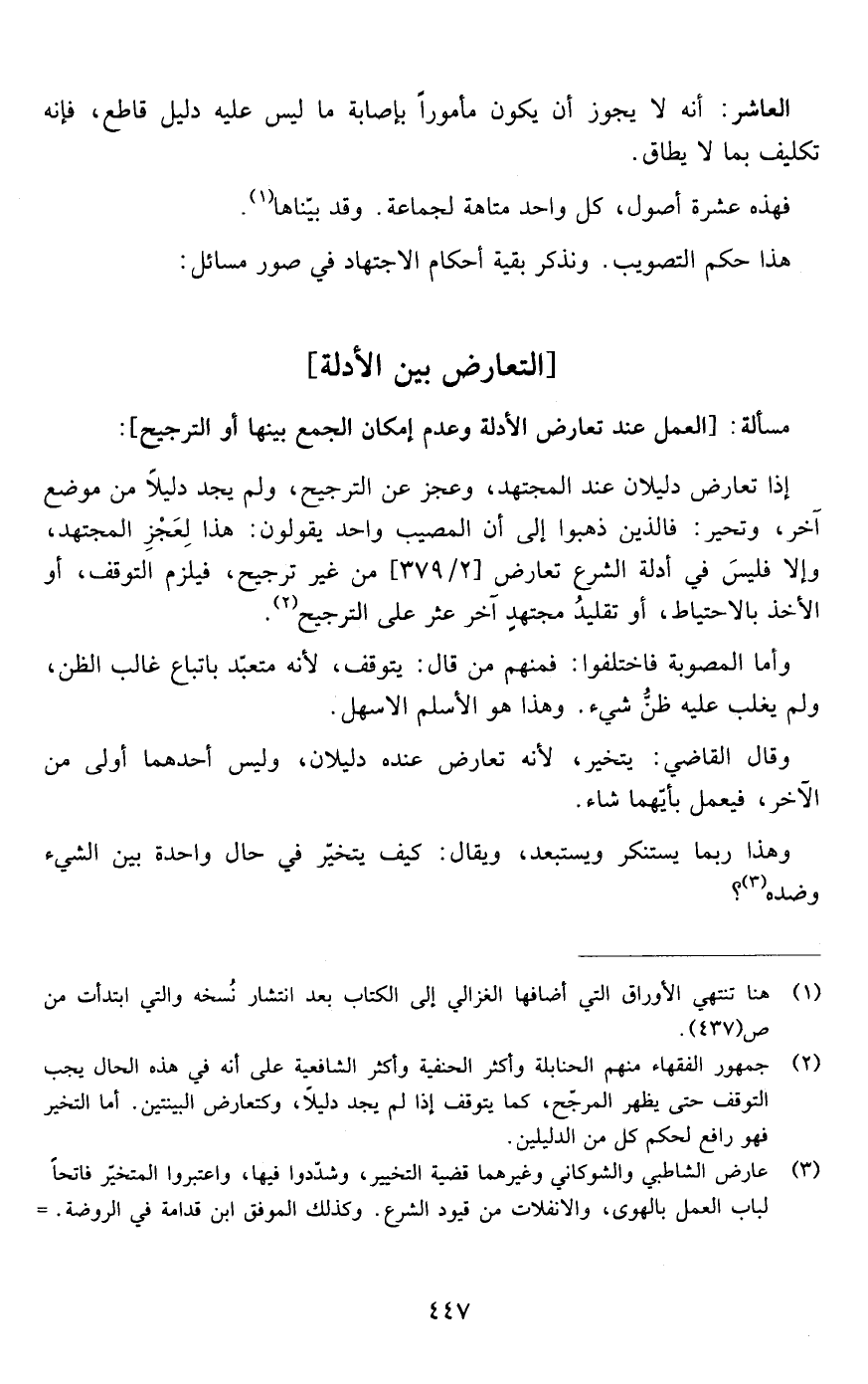مسألة:تعارض الأدلة :