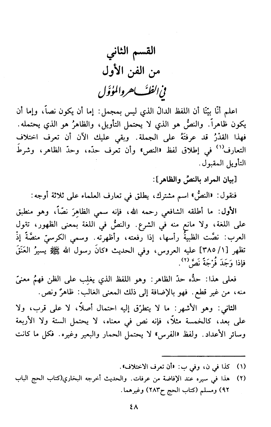 القسم الثاني من الفن الأول في الظاهر والمؤول