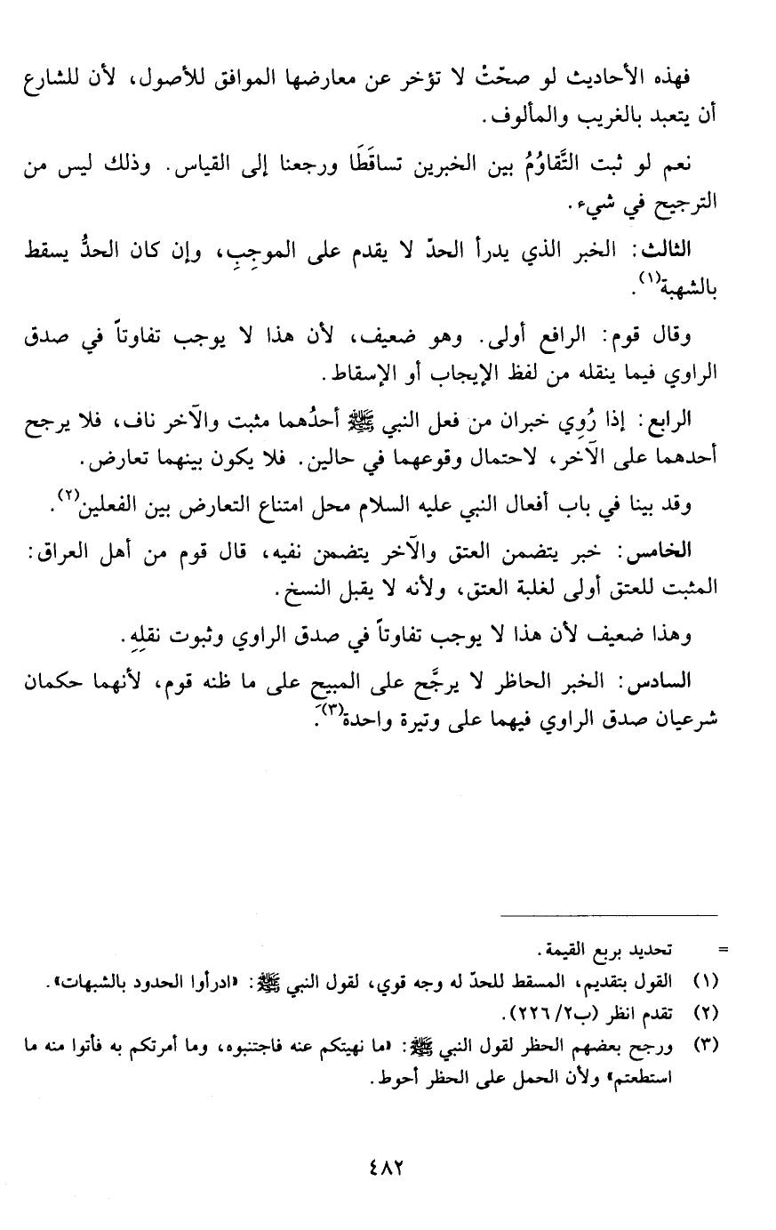 الثالث: الخبر الذي يدرأ الحد لا يقدم على الموجب وإن كان الحد يسقط بالشبهة