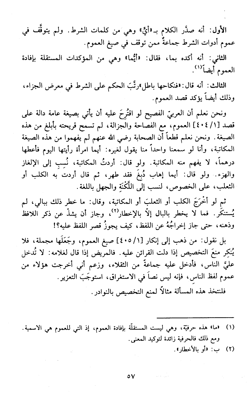ونحن نعلم أن العربي الفصيح لو اقتراح عليه بأن يأتي بصيغة عامة دالة على قصد العموم مع الفصاحة والجزالة لم تسمح قريحته بأبلغ من هذه الصيغة ونحن نعلم قطعا أن الصحابة رضي الله عنهم لم يفهموا من هذه الصيغة المكاتبة وأنا لو سمعنا واحدا منا يقول لغيره أيما امرأة رأيتها اليوم فأعطها درهما لا يفهم منه المكاتبة ولو قال أردت المكاتبة نسب إلى الألغاز والهزء ولو قال أيما أهاب دبغ فقد طهر ثم قال أردت به الكلب أو الثعلب على الخصوص لنسب إلى اللكنة والجهل باللغة