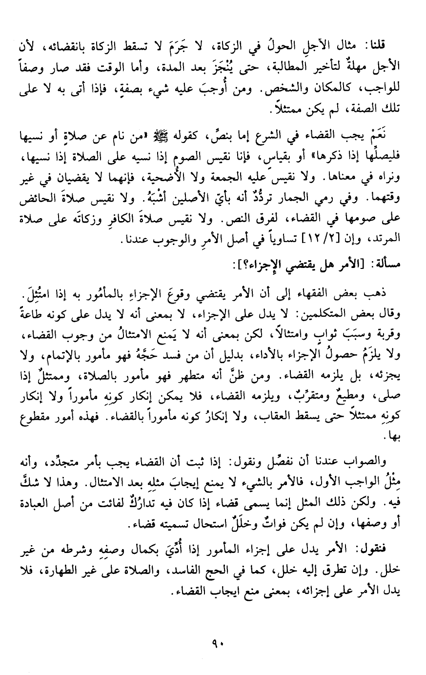 والصواب عندنا أن نفصل ونقول إذا ثبت أن القضاء يجب بأمر متجدد وأنه مثل الواجب الأول فالأمر بالشىء لا يمنع إيجاب مثله بعد الامتثال وهذا لا شك فيه ولكن ذلك المثل إنما يسمى قضاء إذا كان فيه تدارك لفائت من أصل العبادة أو وصفها وإن لم يكن فوات وخلل استحال تسميته قضاء