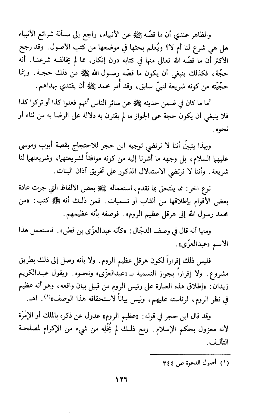 فليس ذلك إقراراً لكون هرقل عظيم الروم. ولا بأنه وصل إلى ذلك بطريق مشروع. ولا إقراراً بجواز التسمية بـ "عبد العزّى" ونحوه. ويقول عبد الكريم زيدان: "إطلاق هذه العبارة على رئيس الروم من قبيل بيان واقعه، وهو أنه عظيم في نظر الروم، لرئاسته عليهم، وليس بياناً لاستحقاقه هذا الوصف" (١). اهـ.