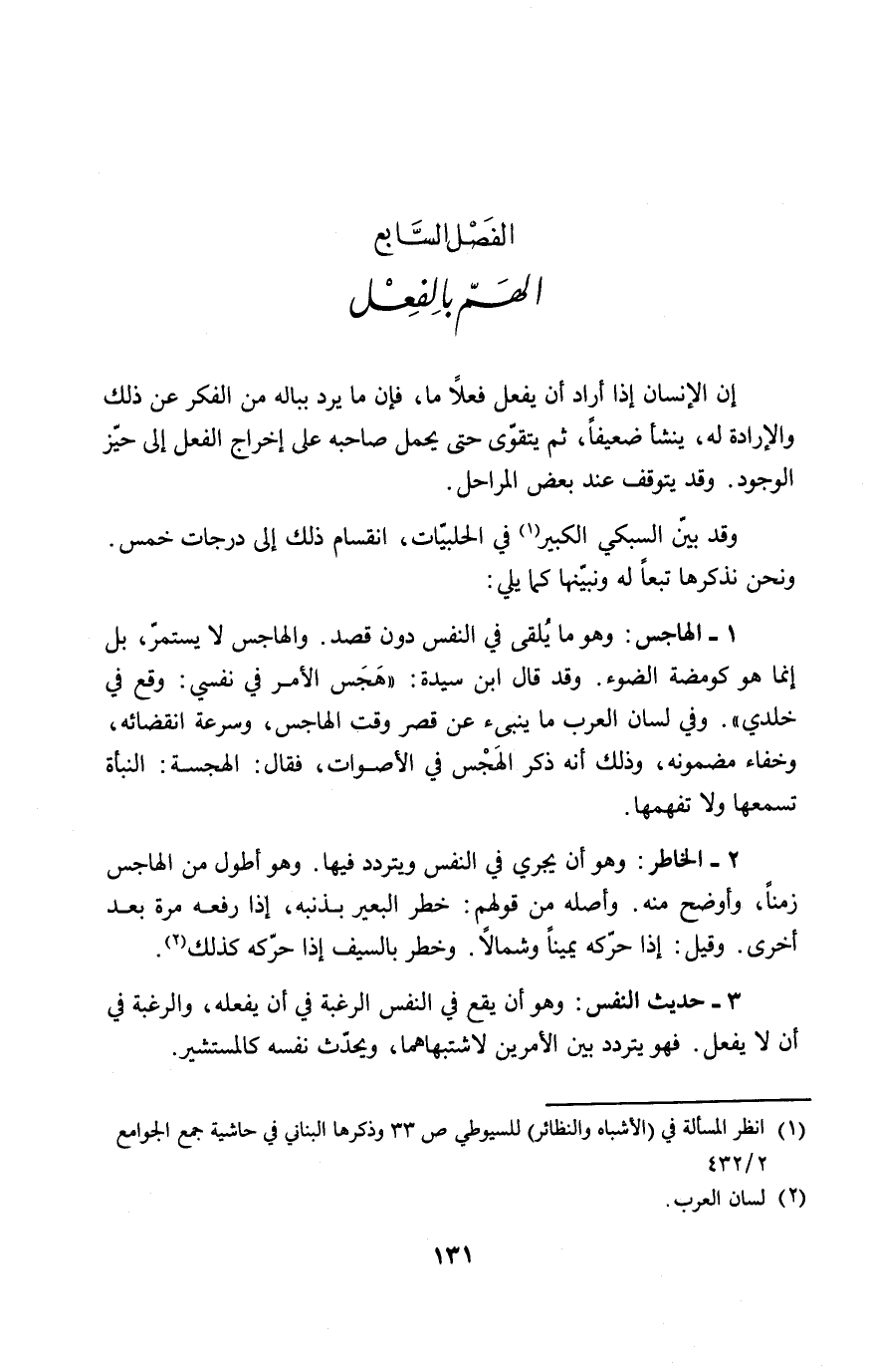 إن الإنسان إذا أراد أن يفعل فعلاً ما، فإن ما يرد بباله من الفكر عن ذلك والإرادة له، ينشأ ضعيفاً، ثم يتقوّى حتى يحمل صاحبه على إخراج الفعل إلى حيّز الوجود. وقد يتوقف عند بعض المراحل.