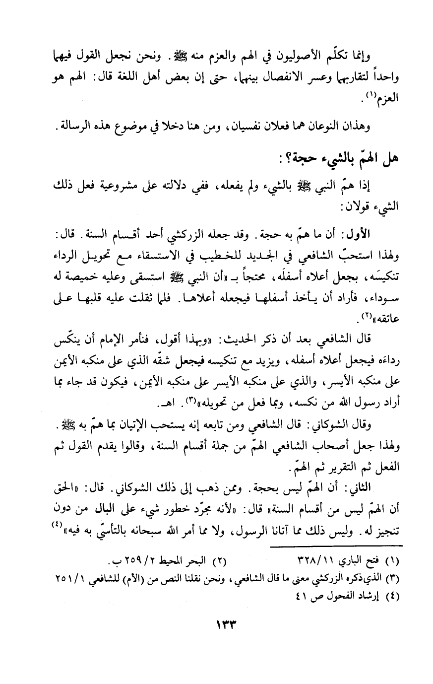 وإنما تكلّم الأصوليون في الهم والعزم منه - صلى الله عليه وسلم -. ونحن نجعل القول فيهما واحداً لتقاربهما وعسر الانفصال بينهما، حتى إن بعض أهل اللغة قال: الهم هو العزم (١).