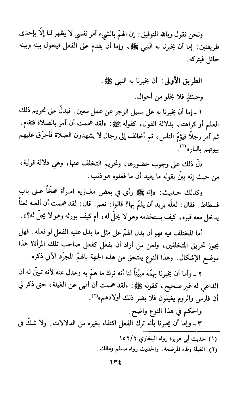 ونحن نقول وبالله التوفيق: إن الهمّ بالشيء أمر نفسي لا يظهر لنا إلاّ بإحدى طريقتين" إما أن يخبرنا به النبي - صلى الله عليه وسلم -، وإما أن يقدم على الفعل فيحول بينه وبينه حائل فيتركه.