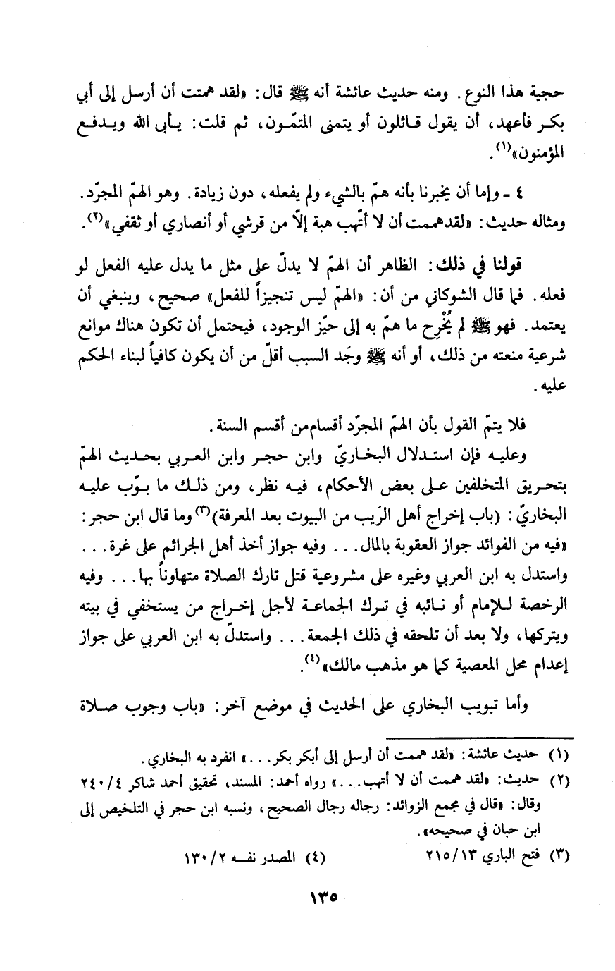 قولنا في ذلك: الظاهر أن الهمّ لا يدلّ على مثل ما يدل عليه الفعل لو فعله. فما قال الشوكاني من أن: "الهمّ ليس تنجيزاً للفعل" صحيح، وينبغي أن يعتمد. فهو - صلى الله عليه وسلم - لم يُخْرِج ما همّ به إلى حيّز الوجود، فيحتمل أن تكون هناك موانع شرعية منعته من ذلك، أو أنه - صلى الله عليه وسلم - وجَد السبب أقلّ من أن يكون كافياً لبناء الحكم عليه.