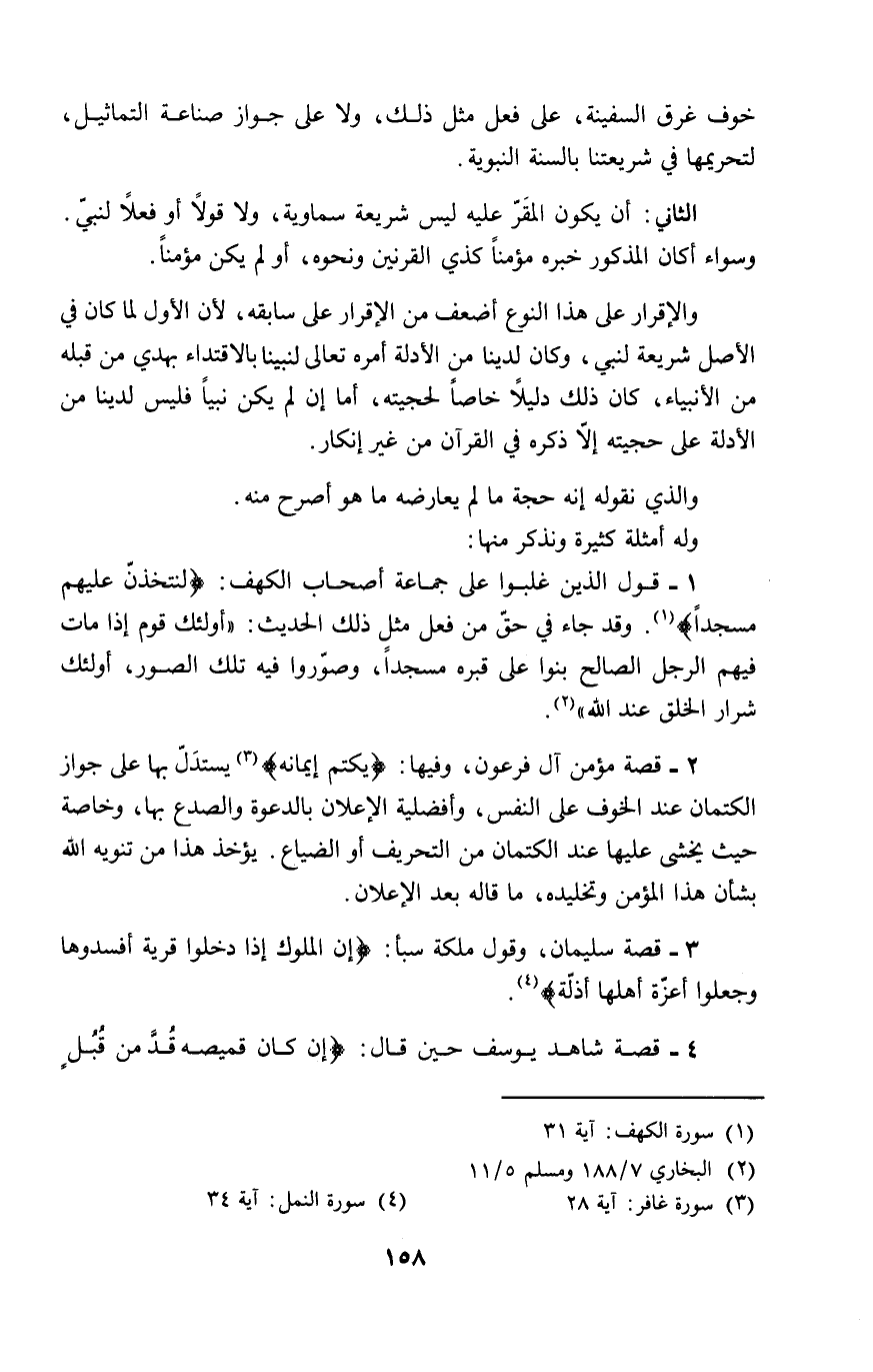 الثاني: أن يكون المقَرّ عليه ليس شريعة سماوية، ولا قولاً أو فعلاً لنبيّ. وسواء أكان المذكور خبره مؤمناً كذي القرنين ونحوه، أو لم يكن مؤمناً.