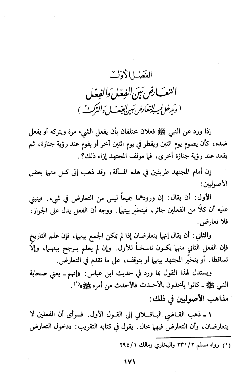 الفصل الأوّل التعارض بين الفعل والفعل (ويدخل فيه التعارض بين الفعل والترك)