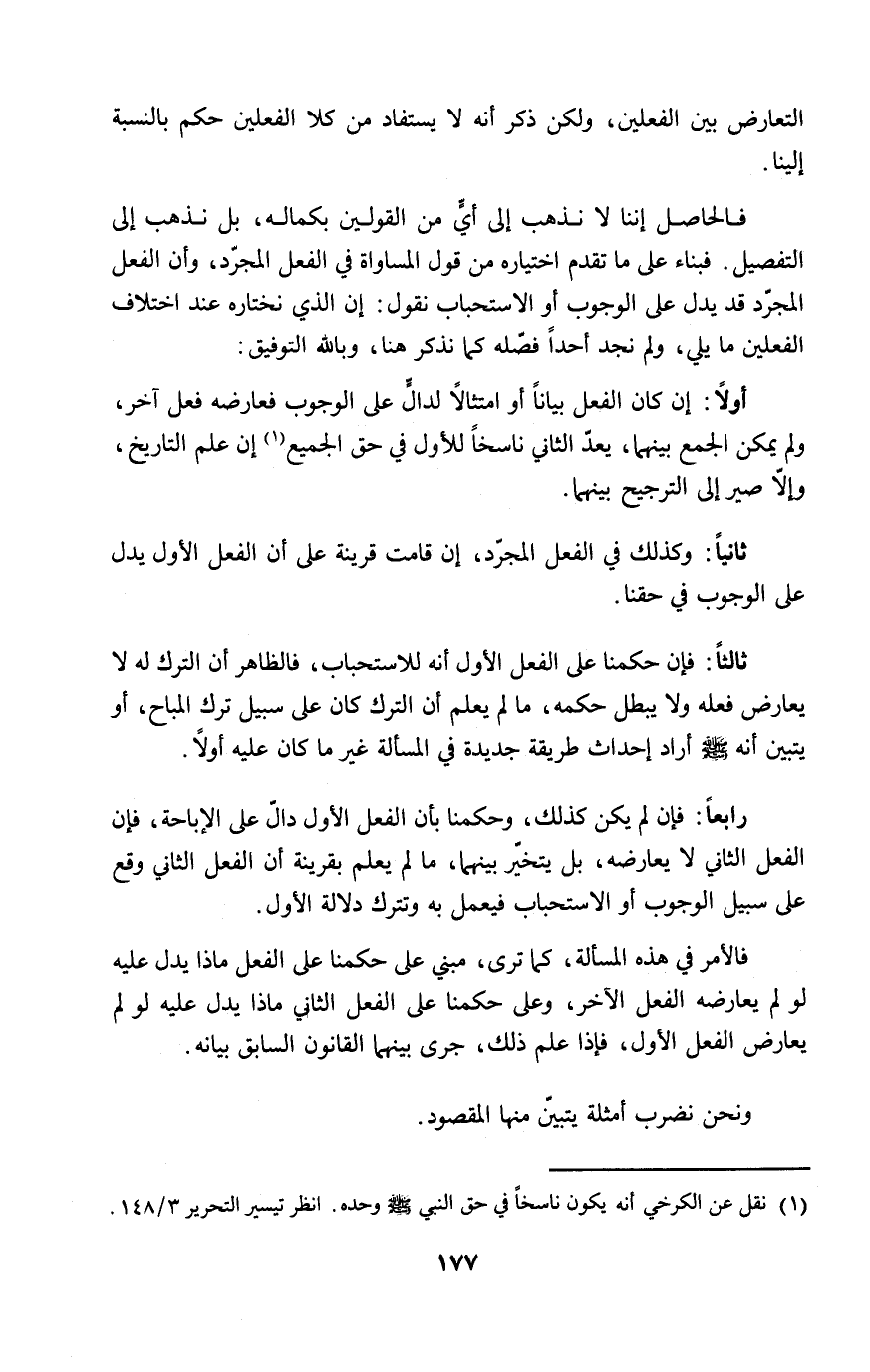 أولاً: إن كان الفعل بياناً أو امتثالًا لدالٍّ على الوجوب فعارضه فعل آخر، ولم يمكن الجمع بينهما، يعدّ الثاني ناسخاً للأول في حق الجميع (١) إن علم التاريخ، وإلاّ صير إلى الترجيح بينهما.
