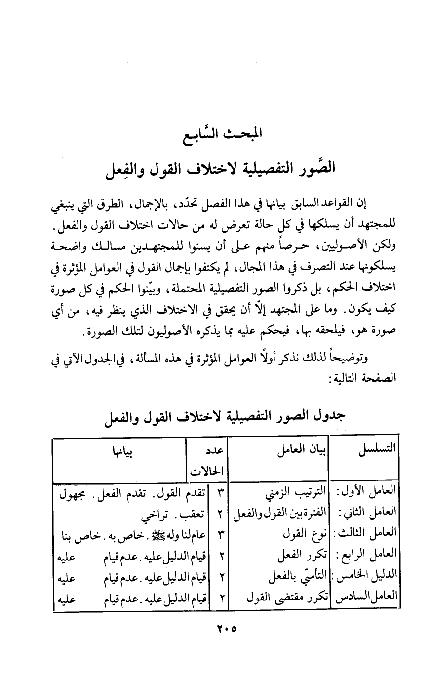 إن القواعد السابق بيانها في هذا الفصل تحدّد، بالإجمال، الطرق التي ينبغي للمجتهد أن يسلكها في كل حالة تعرض له من حالات اختلاف القول والفعل. ولكن الأصوليين، حرصاً منهم على أن يسنوا للمجتهدين مسالك واضحة يسلكونها عند التصرف في هذا المجال، لم يكتفوا بإجمال القول في العوامل المؤثرة في اختلاف الحكم، بل ذكروا الصور التفصيلية المحتملة، وبيّنوا الحكم في كل صورة كيف يكون. وما على المجتهد إلاّ أن يحقق في الاختلاف الذي ينظر فيه، من أي صورة هو، فيلحقه بها، فيحكم عليه بما يذكره الأصوليون لتلك الصورة.