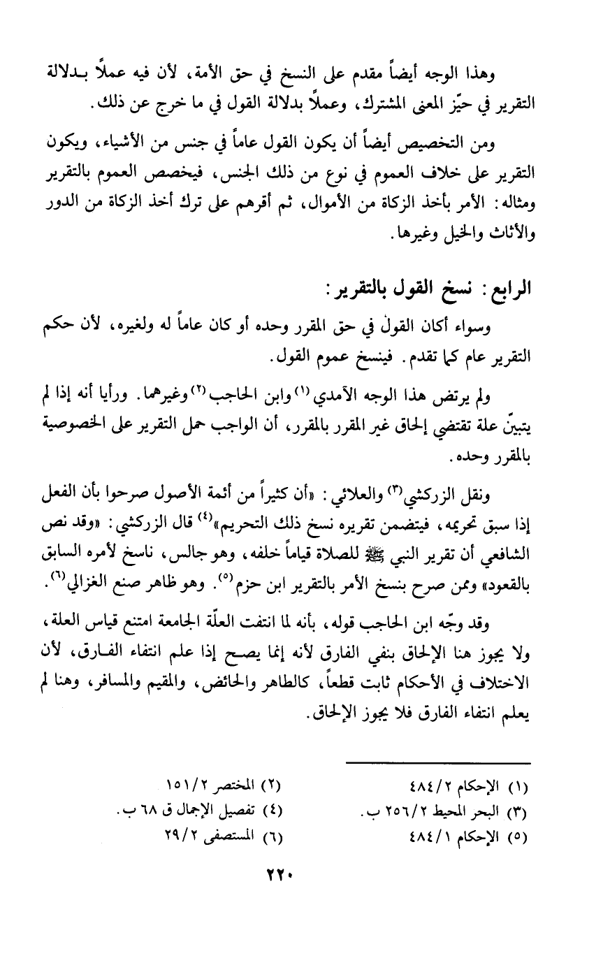 ونقل الزركشي (٣) والعلائي: "أن كثيراً من أئمة الأصول صرحوا بأن الفعل إذا سبق تحريمه، فيتضمن تقريره نسخ ذلك التحريم" (٤) قال الزركشي: "وقد نص الشافعي أن تقرير النبي - صلى الله عليه وسلم - للصلاة قياماً خلفه، وهو جالس، ناسخ لأمره السابق بالقعود" وممن صرح بنسخ الأمر بالتقرير ابن حزم (٥). وهو ظاهر صنع الغزالي (٦).