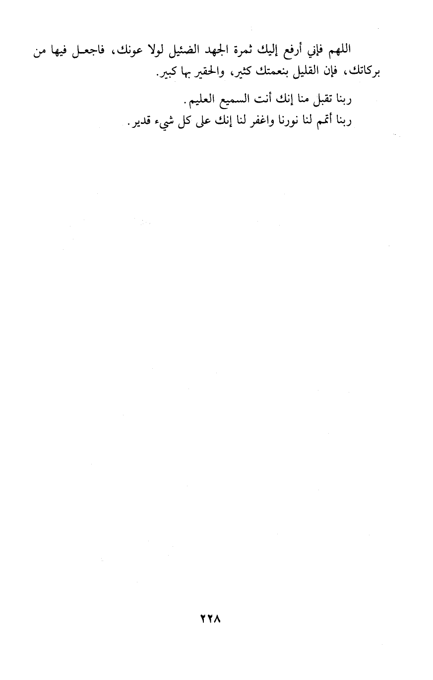 اللهم فإني أرفع إليك ثمرة الجهد الضئيل لولا عونك، فاجعل فيها من بركاتك، فإن القليل بنعمتك كثير، والحقير بها كبير.
