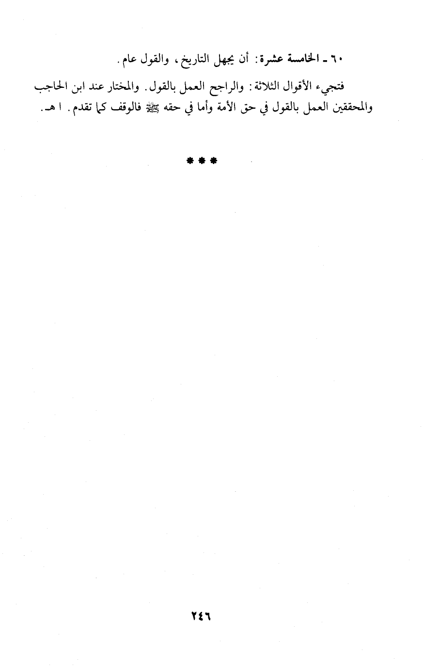 ٦٠ - الخامسة عشرة: أن يجهل التاريخ، والقول عام.