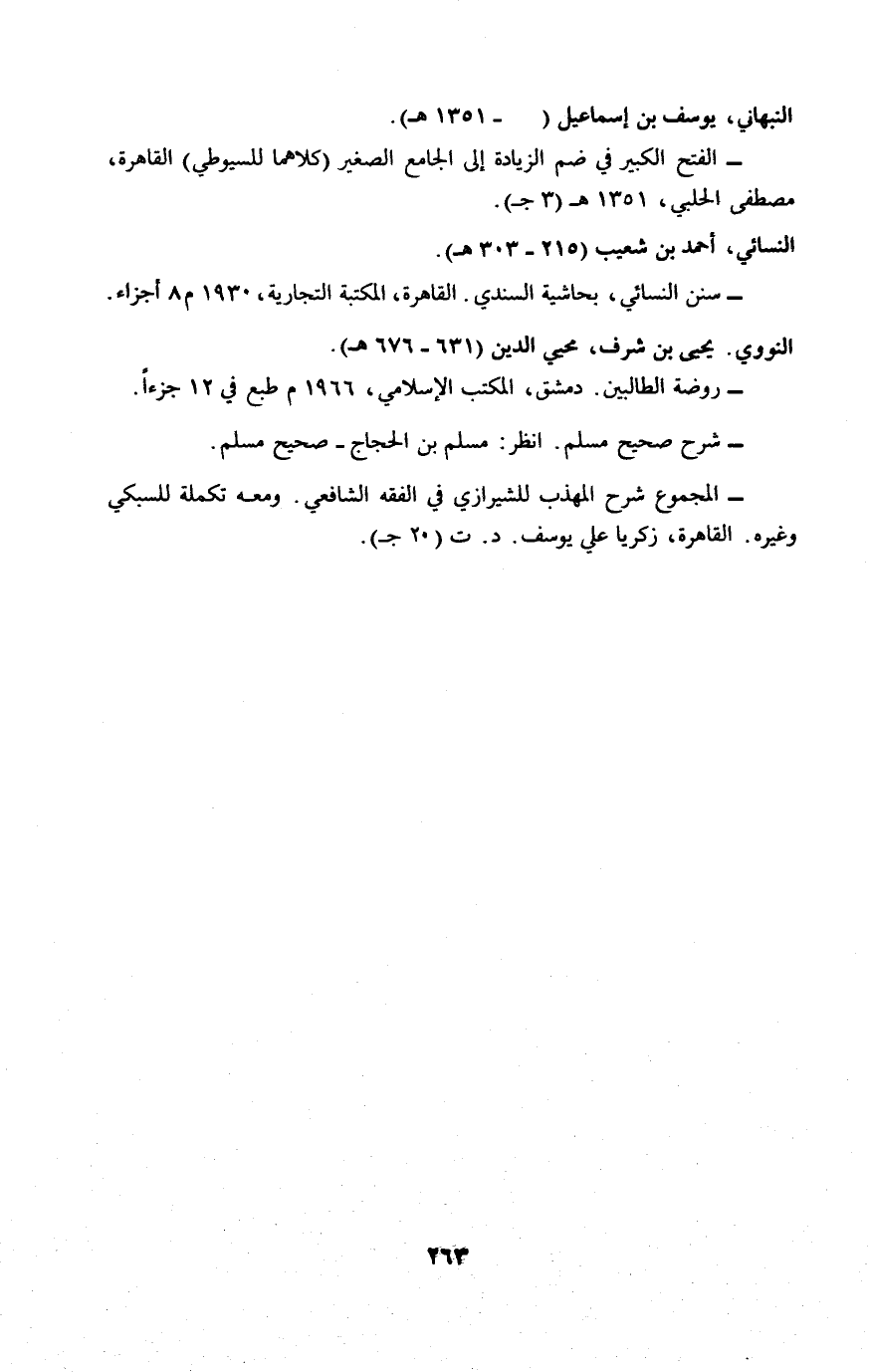 - سنن النسائي، بحاشية السندي. القاهرة، المكتبة التجارية، ١٩٣٠ م ٨ أجزاء النووي. يحيى بن شرف، محيي الدين (٦٣١ - ٦٧٦ هـ).