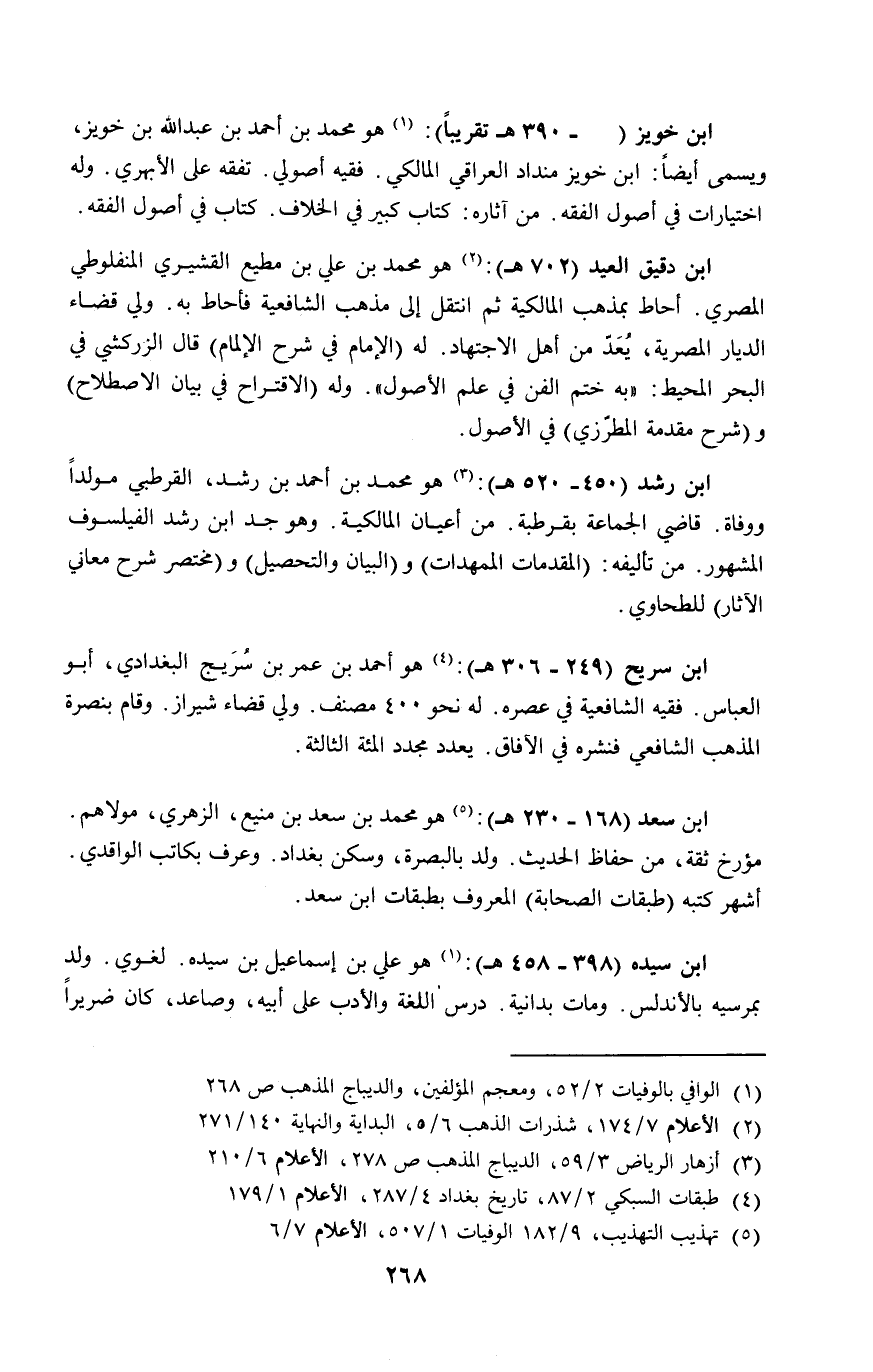ابن رشد (٤٥٠ - ٥٢٠ هـ): (٣) هو محمد بن أحمد بن رشد، القرطبي مولداً ووفاة. قاضي الجماعة بقرطبة. من أعيان المالكية. وهو جد ابن رشد الفيلسوف المشهور. من تأليفه: (المقدمات الممهدات) و (البيان والتحصيل) و (مختصر شرح معاني الآثار) للطحاوي.