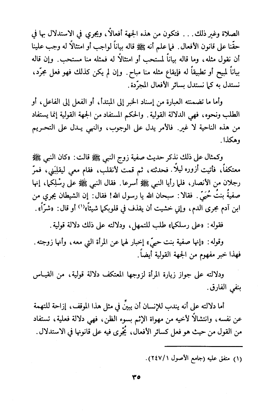أما دلالته على أنه يندب للإنسان أن يبيِّن في مثل هذا الموقف، إزاحة للتهمة عن نفسه، وانتشالاً لأخيه من مهواة الإثم بسوء الظن، فهي دلالة فعلية، تستفاد من القول من حيث هو فعل كسائر الأفعال، يُجْرى فيه على قانونها في الاستدلال.