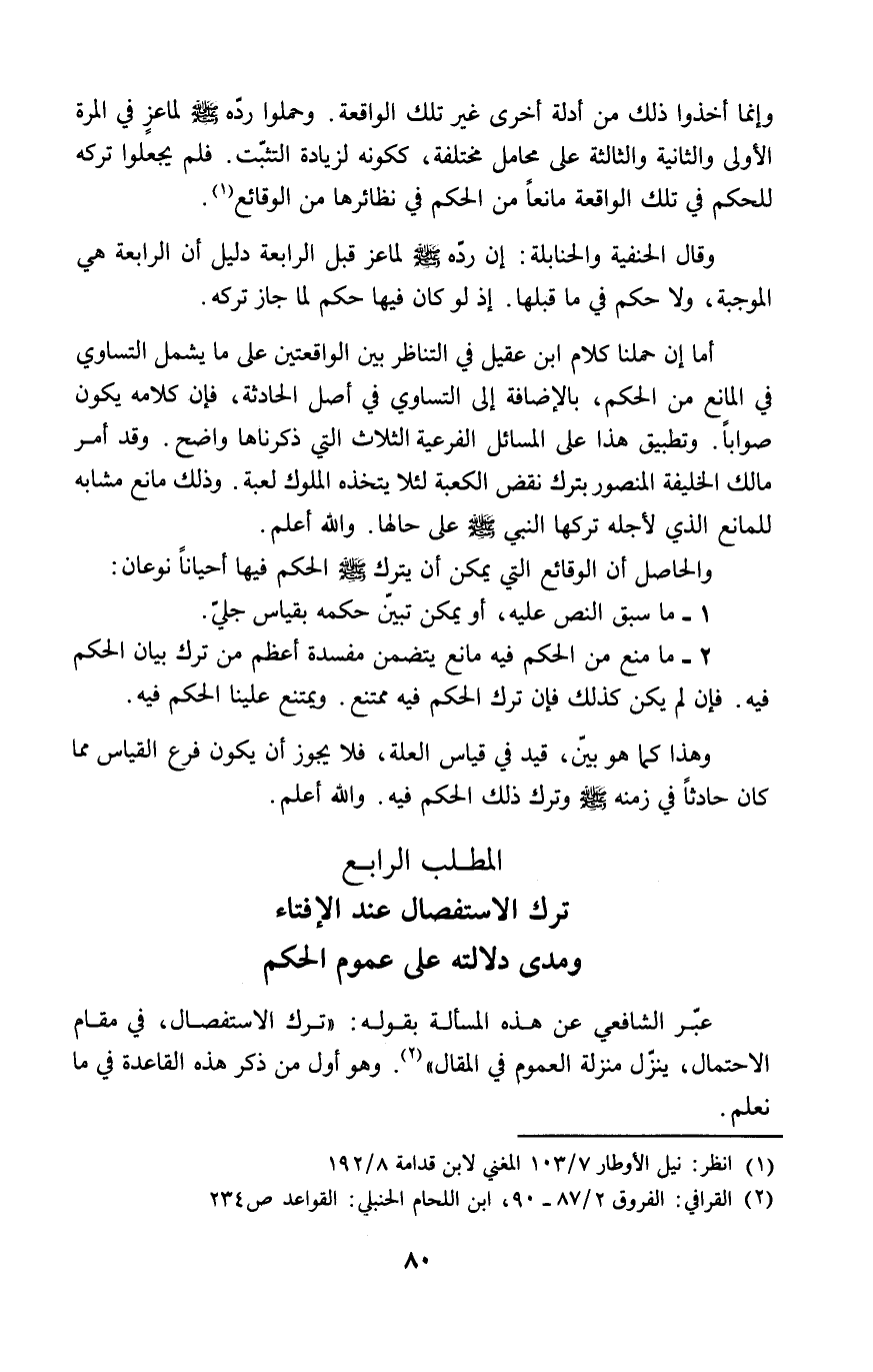 المطلب الرابع ترك الاستفصال عند الإفتاء ومدى دلالته على عموم الحكم