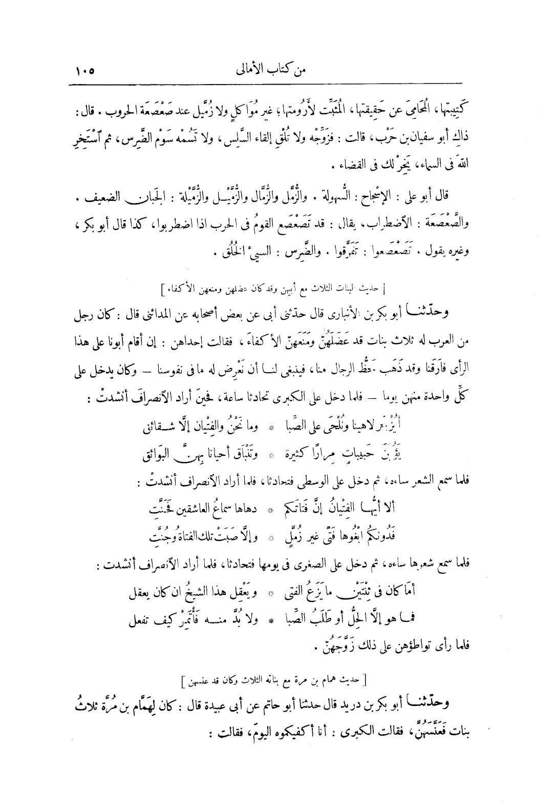 حديث همام بن مرة مع بناته الثلاث وكان قد عنسهن