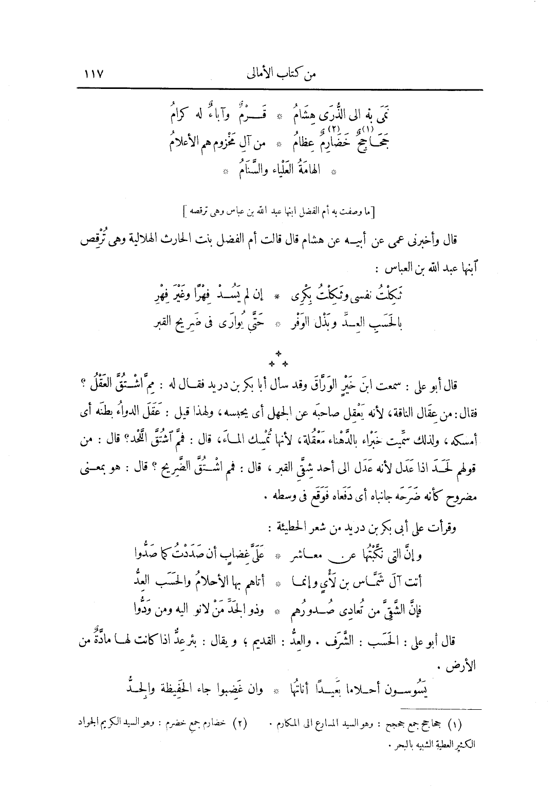 وقرأت عَلَى أَبِي بَكْرِ بن دريد من شعر الحطيئة: