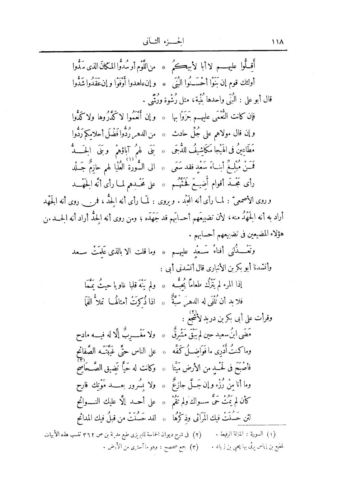 فمن مبلغٌ أبناء سعدٍ فقد سعى ... إِلَى السورة العليا لهم حازمٌ جلد