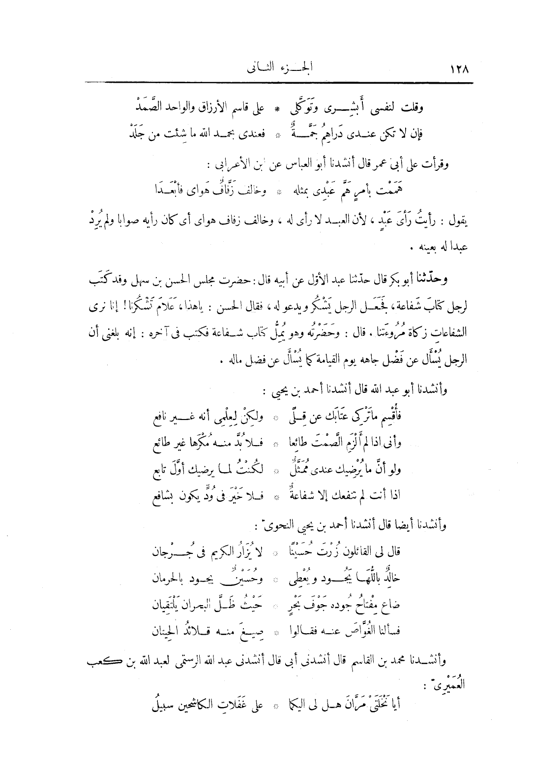 وأنشدنا أَبُو عبد الله، قَالَ: أنشدنا أحمد بن يحيى: