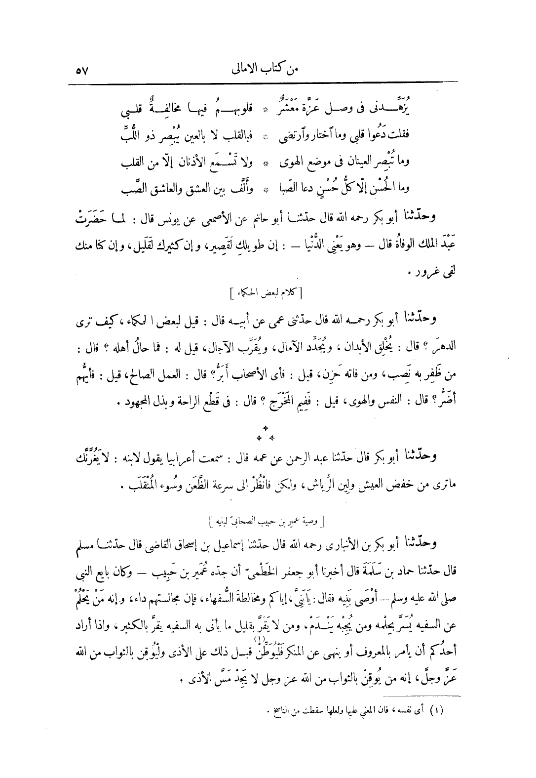 " كلام لبعض الحكماء " وحدثنا أبو بكر رحمه الله قال حدثنى عمى، عَنْ أبيه، قَالَ: قيل لبعض الحكماء، كيف ترى الدهر؟ قَالَ: يخلق الأبدان، ويجدد الآمال، ويقرب الآجال، قيل له، فما حال أهله؟ قَالَ: من ظفر به نصب، ومن فاته حزن، قيل: فأي الأصحاب أبر؟ قَالَ: العمل الصالح، قيل: فأيهم أضر؟ قَالَ: النفس والهوى، قيل: ففيم المخرج؟ قَالَ: فِي قطع الراحة وبذل المجهود